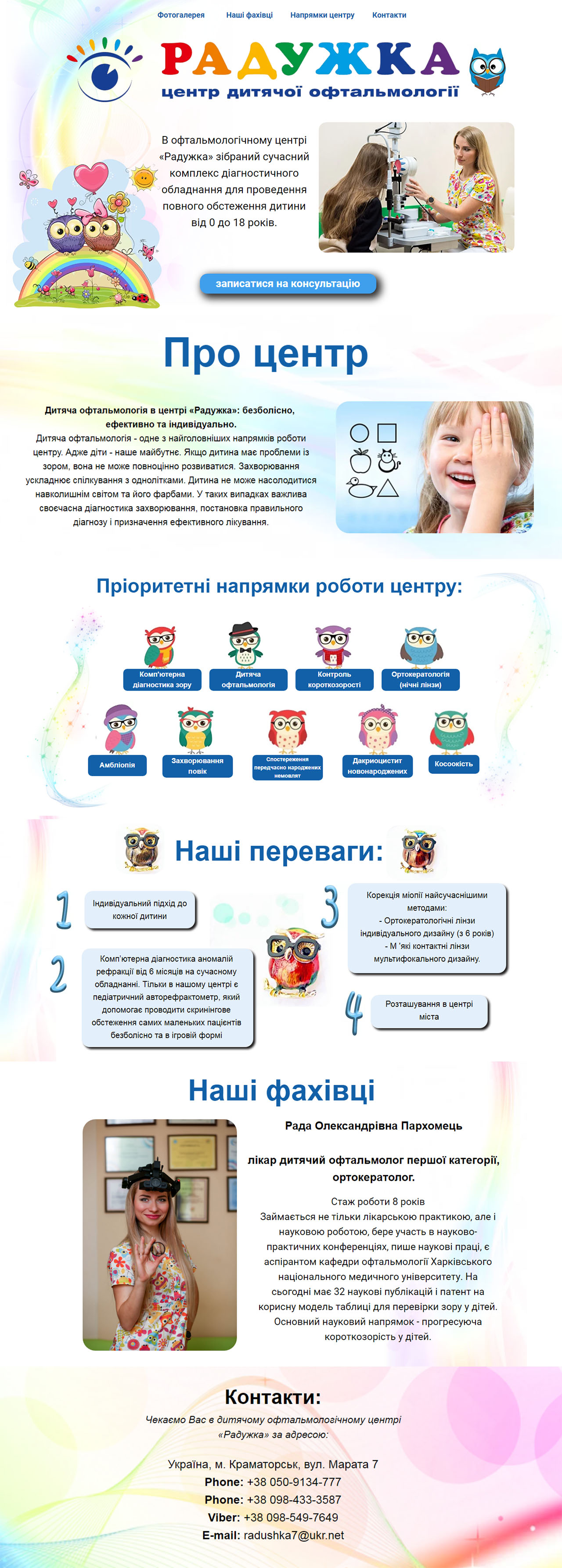 Сайт-визитная карточка для детской офтольмологической клиники РАДУЖКА